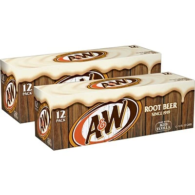 Snap up this 24-pack of root beer, and stock your office with an ample store of this nostalgic soda. This soft drink provides a rich, flavorful pick-me-up without the caffeine. Give your team a generous supply of bold, creamy refreshment with A&W root beer soda.