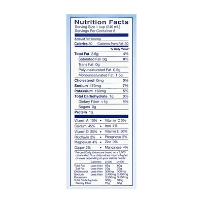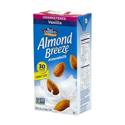 Creamy and delicious, Almond Breeze Almondmilk with a delicate touch of vanilla is a great way to enjoy a healthier drink. With only 30 Calories per serving, these family sized milk cartons are a perfect addition to any home or office break room. 50% more calcium than dairy milk, and an excellent source of vitamins D and E. Pour this delicious almondmilk into your favorite cereal or mix into a smoothie for great unsweetened vanilla taste.