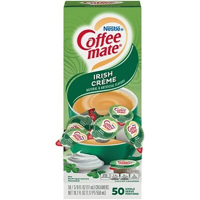 Keep lobbies, break rooms, and cafeterias stocked with flavor options by setting out these creamer singles. This 50-count box acts as a convenient dispenser to keep these singles organized and easily accessible. These dairy-free Coffee-mate creamer singles can be stored at room temperature, making them perfect for bulk use in offices, hotels, and restaurants.