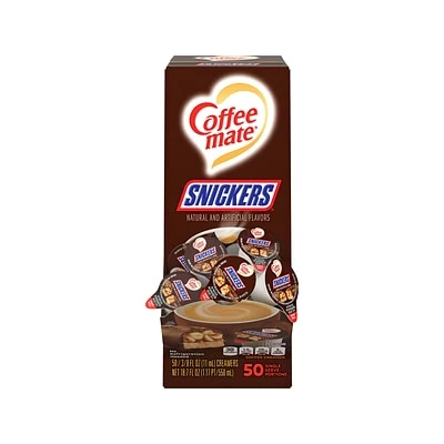 America’s #1 creamer brand introduces Snickers creamer singles, a rich blend of chocolate, nut and caramel flavors. Coffee-mate singles blend quickly and completely into hot or cold beverages.
