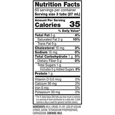 Stock your office pantry or breakfast bar with these creamer cups. Carnation creamer singles contain 0.3 ounces of real dairy for a luscious addition to your hot beverage of choice. The half-and-half is shelf-stable and will hold for six months at room temperature, a long-lasting solution for all your coffee needs.