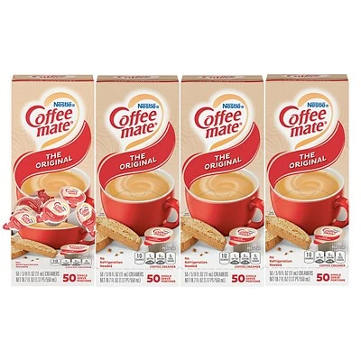 Comes with four (4) 50-count dispenser boxes of Coffee-Mate Creamers