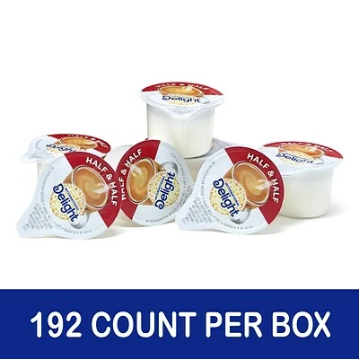 A 192-Count box of International Delight Coffee House Half and Half creamer tubs
