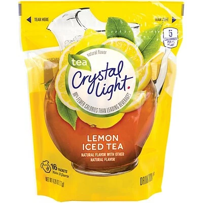 Add some excitement and flavor to that boring glass of water with Crystal Light Drink Mix Pitcher Packs Iced Tea, 16 Count. These drink mix pouches have only 5 calories per 1/8 packet and makes 32 quarts in total. Just pour in a glass or pitcher and stir to start enjoying delicious, healthy drinks. Crystal Light is caffeine-free, low sodium and gluten-free. Crystal Light Drink Mix Pitcher Packs Iced Tea, 16 Count makes any water bottle a sweet, healthy, better tasting drink in no time at all!
