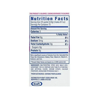 Boost interest in proper hydration with this powdered drink mix. The raspberry flavor creates a satisfying addition to bottled water, and the minimal calories ensure you can enjoy it guilt-free. The individually sealed packets of this Crystal Light powdered drink mix make it easy to store hygienically in break rooms and desks.