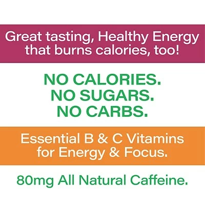 No calories, sugars, or carbs; packed with essential B and C vitamins and nutrients for an energy drink like no other