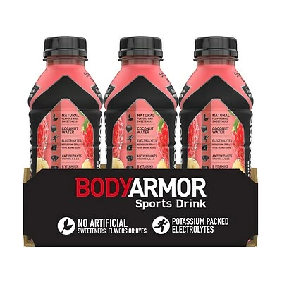 BodyArmor is a premium sports drink that provides superior hydration. It is packed with electrolytes, coconut water, and vitamins and is low in sodium and high in potassium.