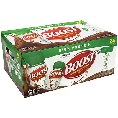 24 8-Fluid Once Bottles of Boost High Protein Drink in Rich Chocolate flavor