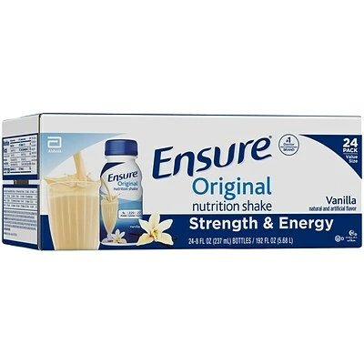 From the #1 doctor recommended brand, Ensure Original Nutrition Shakes provide complete and balanced nutrition to help you stay healthy, active and energetic. Each shake has 9 grams of protein and 26 essential vitamins and minerals. A great tasting way to get protein and antioxidants (Vitamins C, E & Selenium) every day. Suitable for lactose intolerance and gluten-free (Not for people with galactosemia). We recommend drinking 1-2 shakes per day to feel improved energy and strength. Also, comes in chocolate flavors as well!