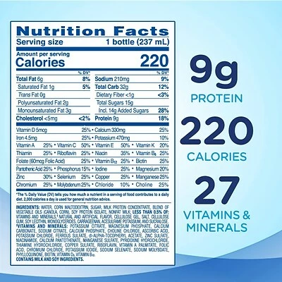 Each Ensure Original Shake has 220 calories and 9 grams of protein, to provide you with complete nutrition