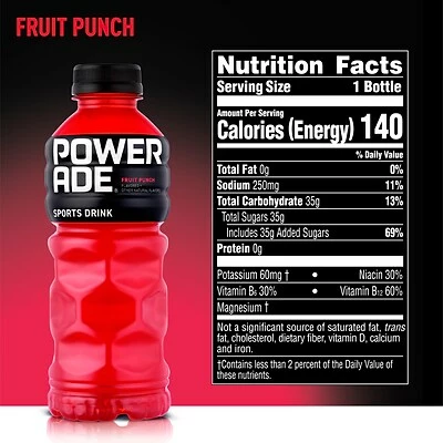 Replenish fluids and electrolytes with this fruit-flavored sports drink. With vitamins B3, B6, and B12 to help support healthy metabolism and a 6 percent carbohydrate solution to help fuel working muscles, this Powerade sports drink is a refreshing choice for any time of day.