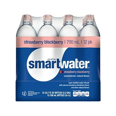 Treat your taste buds to a berry delicious flavor infusion with new strawberry blackberry Glaceau Smartwater, the vapor distilled water you love infused with natural fruit flavors. It’s a perfect way to stay hydrated when you need to recharge while working at the office or commuting home, or when you need a refreshing treat as a part of your health and wellness routine. Each drop of Glaceau Smartwater is purified through vapor distillation, a process inspired by the clouds and the way water is purified in nature. You won’t find any sugar or calories in any bottle of Smartwater. What you will find is electrolytes added for taste, giving you a refreshing way to hydrate. Each sip of strawberry blackberry Glaceau Smartwater is like a sip of spa water, giving you a taste that’s pure, crisp, berry, and refreshing. This water is available in 23.7 oz. bottles, a perfect size for when you need that quick moment of refreshment.