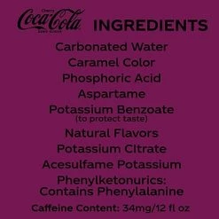 Ingredients summary: aspartame, acesulfame potassium, caramel color, phosphoric acid, potassium benzoate, natural flavors, carbonated water, and potassium citrate