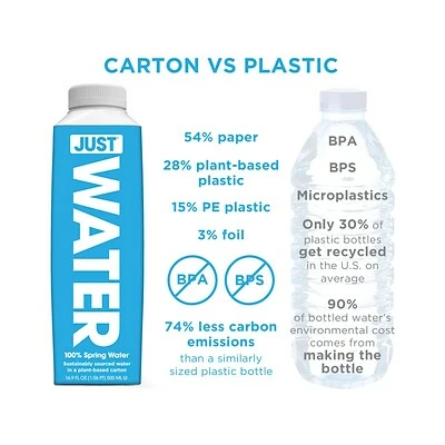 Good things come in small sizes. This is the perfect package to take with you on your next adventure, near or far. The carton is easy for even the littlest hands to hold, yet big enough to hydrate on a run. Just Water kept the same wide mouth design to make it easy to refill.
