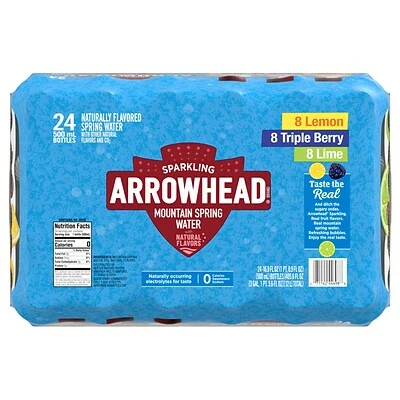 Discover the refreshingly real taste of Arrowhead Sparkling Water. Free of calories, sugars, natural or artificial sweeteners, and colors, this sparkling water is a refreshing alternative to sugary beverages. Made with 100% real mountain spring water combined with refreshing carbonation, it can be enjoyed in a wide range of natural fruit-flavored sparkling waters that make staying hydrated fun and easy. It’s simply ahh-mazing β just sip Arrowhead Brand Sparkling throughout the day and see for yourself.