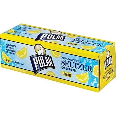Polarยฎ 12 oz Lemon seltzer refreshes naturally and is free from calories. Seltzer without sodium comes in capacity of 12 oz can and is sold as 24 per pack.